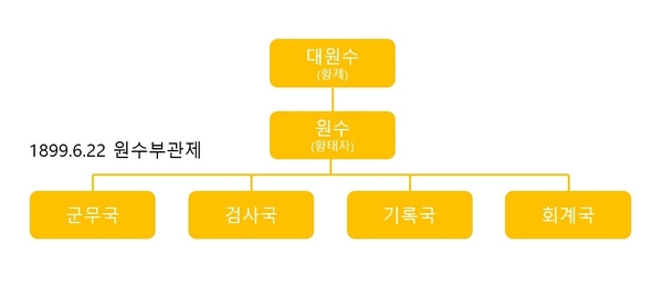 ¡Û ´ëÇÑÁ¦±¹ ¼±Æ÷¿Í ¿ø¼öºÎ ¼³Ä¡ °íÁ¾Àº ¾Æ°üÆÄõ ÀÌÈÄ ¾ðÁ¦±îÁö ·¯½Ã¾Æ°ø»ç°ü¿¡ ÀÖÀ» ¼ö ¾ø¾ú±â ¶§¹®¿¡ ÆÄõÇÑÁö 1³â ³²Áþ, °æ¿î±ÃÀ» »õ·Î¿î Á¤±ÃÀ¸·Î »ï¾Æ ȯ±ÃÇÕ´Ï´Ù. À̾î Á¶¾ßÀÇ Ãß´ë·Î ¸»¹Ì¾Ï¾Æ Á¦±¹À» ¼±Æ÷Çϰí ÀÚ½ÅÀº ȲÁ¦ÀÇ ÀÚ¸®¿¡ ¿À¸£´Ï, À̸¥¹Ù ´ëÇÑÁ¦±¹ÀÔ´Ï´Ù. 1897³â »õ ¿ª»ç¸¦ ½ÃÀÛÇÑ ´ëÇÑÁ¦±¹Àº Á¶¼±ÀÇ ÁöÀ§¸¦ ȲÁ¦±¹À¸·Î ¿Ã·Á ¸¸±¹°ø¹ý »ó ÀÎÁ¤¹Þ´Â ¸í½Ç»óºÎÇÑ ÀÚÁÖ µ¶¸³±¹ÀÇ ÁöÀ§¸¦ ȹµæÇϱâ À§ÇÑ ³ë·ÂÀ̾ú½À´Ï´Ù. ±×·¯±â À§Çؼ± ¹«¾ùº¸´Ù ±º»ç·ÂÀÇ Áõ°ÀÌ Àý½ÇÇß°í, ÀÌ´Â ÀÌÈÄ ´ëÇÑÁ¦±¹ÀÌ ±¹¹æ¿¹»êÀ» ¹«·Á 40%ÀÌ»ó ±îÁö Æí¼ºÇÏ¿© Ȱ¿ëÇÏ´Â ³ë·ÂÀ» º¸¿©ÁÝ´Ï´Ù. ±º»ç¶õ ³ª¶óÀÇ ¿ïŸ¸®À̰í ÀÓ±ÝÀÇ ¼ÕÅé°ú ¾î±Ý´ÏÀÔ´Ï´Ù. Áý¿¡ ¿ïŸ¸®°¡ ¾øÀ¸¸é ¹æ¾îÇÒ °èÃ¥ÀÌ ¾øÀ¸¸ç, »ç¶÷¿¡°Ô ¼ÕÅé°ú ¾î±Ý´Ï°¡ ¾øÀ¸¸é À§¾öÀ» º¸ÀÏ ±Ç·ÂÀÌ ¾ø½À´Ï´Ù. À̰ÍÀº ±× ¿øÀÎÀÌ ´Ù¸¥ µ¥ ÀÖ´Â °ÍÀÌ ¾Æ´Ï°í ÁöÈÖ Ã¼°è°¡ ÀÌ¹Ì Á¤ÇØÁ³±â ¶§¹®ÀÔ´Ï´Ù. ´ë¿À¸¦ Æí¼ºÇÏ¿© ´ë°ü(Óéί)À» Á¤Çϰí, ´ëÀå(ÓÞíâ)¿¡°Ô ÃѰýÇÏ¿© °Å´À¸®°Ô Ç쵂 Â÷·Ê¸¦ ³ª´©¾î ¿µ¼ÖÇÏ°Ô ÇÏ´Â °ÍÀº ¾²±â¿¡ Æí¸®Çϵµ·Ï Çϱâ À§Çؼ¿´½À´Ï´Ù. Áö±ÝÀº ±×·¸Áö ¾Ê¾Æ¼ ºñ·Ï ´ë¿À¸¦ Æí¼ºÇÑ ¸íĪÀº ÀÖÁö¸¸ º´Á¤µéÀÌ Á¦ ¸¶À½´ë·Î ´ë¿À¸¦ ¿Å±â°í ÀÖ´Â °Íµµ ½É»óÇÑ ÀÏ·Î º¸°í ÀÖÀ¸¸ç, ±× ¿ìµÎ¸Ó¸®·Î µÈ »ç¶÷µé ¿ª½Ã ÁöÈÖ Ã¼°è¿Í ±âÀ²À» ¾ËÁö ¸øÇϰí ÀÖ½À´Ï´Ù. °©½Å³â¿¡ ÆóÇϰ¡ µµ¼ºÀ» ¶°³ª º¯¶õÀ» ÇÇÇÏ¿© °¥ ¶§ ÇÑ ¸íÀÇ È£À§ ±º»çµµ ¾ø¾úÀ¸¸ç, °©¿À³â¿¡ ÀϺ» ±º»çµéÀÌ ´ë±ÈÀ» ħ¹üÇÏ¿´À» ¶§¿¡µµ ÇÑ ¸íÀÇ ¹æ¾îÇÏ´Â ±º»ç°¡ ¾ø¾úÀ¸¸ç, À»¹Ì³â¿¡ ´ë±È¿¡ ħ¹üÇÑ ¿ªÀûÀÇ ±º»çµéÀÇ È°¡ ȲÈÄ¿¡°Ô ¹ÌÃÆÀ¸³ª Á¦¾ÐÇÏÁö ¸øÇÏ¿´½À´Ï´Ù. - 1898³â(°íÁ¾ 35, ±¤¹« 2) 1¿ù 3ÀÏ 1898³â 1¿ù 3ÀÏ 5ǰ ÃÖ¿õÀº ÇöÀç ó¸®ÇؾßÇÒ Àϵ鿡 ´ëÇÑ »ó¼Ò¸¦ ȲÁ¦¿¡°Ô ¿Ã¸³´Ï´Ù. ÀÌ¿Í °°Àº »ó¼Ò´Â ´ç½Ã ´ëÇÑÁ¦±¹ÀÌ ³ª¾Æ°¡¾ßÇÒ ±º»çÀû ¹æÇâÀ» Á¦½ÃÇÑ °ÍÀ̱⵵ Çѵ¥, ÇöÀç ±º±â°¡ ¹®¶õÇÏ´Ï À̸¦ ¹Ù·Î Àâ¾Æ¾ß ÇÑ´Ù´Â °ÍÀÔ´Ï´Ù. °©½ÅÁ¤º¯, °©¿À¿Ö¶õ, À»¹Ì»çº¯ µîÀÇ ½ÇÁ¦ ¿Õ±ÃÀÌ Ä§¹ü´çÇÑ ÀϵéÀ» ³ª¿ÇÏ¸é¼ ÁöÈÖü°è¿Í ±º±â¸¦ ¹Ýµå½Ã È®¸³ÇؾßÇÑ´Ù´Â °ÍÀ̾ú°í, ±º»ç·Â °È´Â °ð ȲÁ¦±ÇÀÇ °È¸¦ ÀǹÌÇÏ´Â °ÍÀ̱⿡ °íÁ¾Àº 'Áø´ÞÇÑ °Í Áß¿¡¼ äÅÃÇÒ ¸¸ÇÑ °ÍÀÌ ¾øÁö ¾Ê´Ù"¶ó¸ç ¸ðµÎ ¼ö¿ëÇϰڴٴ ÀÇÁö¸¦ ¹àÈü´Ï´Ù. °°Àº ÇØ 6¿ù °íÁ¾Àº À̸¦ À§ÇØ ¿ø¼öºÎ¸¦ ¼³Ä¡ÇÒ °ÍÀ» Á÷Á¢ÀûÀ¸·Î À̾߱âÇϱ⵵ ÇÏ¿´½À´Ï´Ù. ÀÌ·¯ÇÏ´Ï °¢±¹ ´ë¿ø¼öÀÇ ¿¹¿¡ µû¶ó ÁüÀÌ Á÷Á¢ À°±º°ú ÇØ±ºÀ» Åë¼ÖÇÒ °ÍÀ̸ç ȲÅÂÀÚ¸¦ ¿ø¼ö·Î »ï¾Æ ÀÏü Åë¼ÖÇϵµ·Ï ÇÒ °ÍÀÌ´Ù. ±×·¯³ª ºñ»ó»çŰ¡ ¹ß»ýÇϰųª ÃâÁ¤ÇØ¾ß ÇÏ´Â °æ¿ì°¡ ¾Æ´Ï¸é ºñ·Ï ȲÀÚ³ª Ȳ¼ÕÀ̶ó°í ÇÏ´õ¶óµµ ´ëÀåÀÌ µÉ ¼ö ¾ø´Ù. - 1898³â(°íÁ¾ 35, ±¤¹« 2) 6¿ù 29ÀÏ ÀÌ·¯ÇÑ ÀǰßÀ» ¹ÙÅÁÀ¸·Î ¾à 1³â °£ÀÇ Áغñ¸¦ °ÅÃÄ 1899³â 6¿ù 22ÀÏ¿¡ ¿ø¼öºÎ°üÁ¦°¡ ¹ÝÆ÷µÇ¸é¼ ¿ø¼öºÎ°¡ ¼³Ä¡µË´Ï´Ù. ¿ø¼öºÎ´Â ȲÁ¦ÀÇ ¸í·ÉÀ¸·Î½á Á÷Á¢ ±º·ÉÀÌ Àü´ÞµÉ ¼ö ÀÖµµ·Ï ¸¸µé¾îÁø ºÎ¼·Î ȲÁ¦±ÇÀ» °ÈÇÏ´Â »ó¡ÀûÀÎ ºÎ¼¿´À¸¸ç, ÀÌÈÄ ½ÇÁúÀûÀ¸·Î°í ±ººÎÀÇ ¾÷¹«µéÀÌ À̰üµÇ¸é¼ ¸í½Ç»óºÎÇÑ ÃÖ°í±º·É±â°üÀ¸·Î ÀÚ¸®¸Å±èÇÏ°Ô µË´Ï´Ù. ¡Û¿ø¼öºÎÀÇ Á¶Á÷°ú ±â´É 1899³â 6¿ù 22ÀÏ¿¡ ¹ÝÆ÷µÈ ¿ø¼öºÎ °üÁ¦¸¦ Á¤¸®ÇÏ¸é ¾Æ·¡¿Í °°Àº µµ½ÄÀ¸·Î Ç¥ÇöÇÒ ¼ö ÀÖ½À´Ï´Ù. ![]() ¿ø¼öºÎ´Â "´ëȲÁ¦ÆóÇÏ´Â ´ë¿ø¼ö·Î¼ ±º±â¸¦ ÃѶ÷Çϰí À°ÇرºÀ» Åë·ÉÇϸç, ȲÅÂÀÚ ÀüÇÏ´Â ¿ø¼ö·Î¼ À°ÇرºÀ» ÀÏ·üÀûÀ¸·Î Åë¼ÖÇÑ´Ù. ÀÌ¿¡ ¿ø¼öºÎ¸¦ ¼³Ä¡ÇÑ´Ù."´Â °ñÀÚ·Î Æí¼ºµÇ¾úÀ¸¸ç, ¿ø¼öºÎ´Â Ȳ±Ã ³»¿¡ ¼³Ä¡ÇÏ°í ¹®»ç(ÙþÞÀ, ¹®ÀÎ)À» µÎÁö ¾Ê°Ô ÇÏ¿´À¸¸ç ÈÖÇÏ¿¡ 4°³±¹À» µÎ¾ú½À´Ï´Ù. 1) ±º¹«±¹ / ±º¹«±¹Àå(ÈÄ¿¡ ÃÑÀå) - ´ë¿ø¼ö, ¿ø¼ö, ¿ø¼öºÎÀÇ ÀÎÀå º¸°ü¿¡ °üÇÑ ÀÏ - ±º»ç¿¡ °üÇÑ Á¶Ä¢°ú °ø¹®À» ±ººÎ¿Í °¢ ºÎ´ë¿¡ ¹ßÆ÷(Û¡øÖ)ÇÏ´Â ÀÏ - ±¹¹æ°ú ±º»çµ¿¿ø, ±º´ë Æí¼º¿¡ °üÇÑ ÀÏ - ÀüÅõÁغñ¿Í ±ººñÁö±Þ, À°Çرº ´ëÇб³¿Í À°Áö¿Í ¹Ù´ÙÀÇ Ãø·®¿¡ °üÇÑ ÀÏ - ±ººÎ¿Í °¢ ºÎ´ëÀÇ Àϱâ¿Í º¸°í¸¦ Á¢¼öÇÏ¿© °³·«À» ÃÊ·ÏÇÏ¿© º¸°íÇÏ´Â ÀÏ 2) °Ë»ç±¹ / °Ë»ç±¹Àå(ÈÄ¿¡ ÃÑÀå) - ±º»ç¿¡ °üÇÑ »ó»ç(ßÛÞô, Æ÷»ó), ½Â¼(ã³ßó, ½ÂÁø), õÀü(ôÃï®, üÁ÷)°ú ¡°è¿¡ °üÇÑ ÀÏ - °¢ º´Çб³ÀÇ ±³À°¿¡ °üÇÑ ÀÏ - Àå±³ÀÇ ±Ù¸¸(ÐÃØ·)¿¡ °üÇÑ ÀÏ - ¸ÅÀÏ ½ÃÀ§´ë